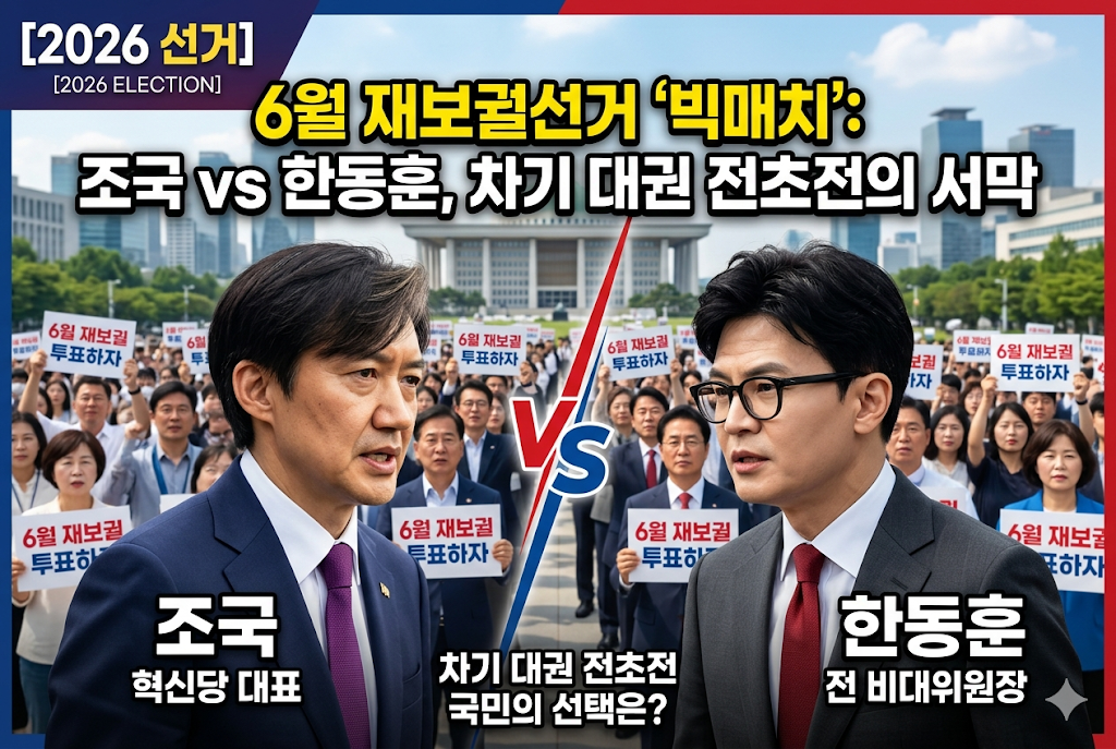 2026년 6월 3일 지방선거와 함께 치러질 재보궐선거가 조국 대표와 한동훈 전 대표의 등판설로 '미니 총선'급 격전지가 되었습니다. 원내 진입을 노리는 조국과 정치적 부활을 꿈꾸는 한동훈, 두 거물의 출마 예상지와 전략적 선택이 차기 대권 향방을 결정지을 핵심 변수로 떠오르며 국민적 관심이 집중되고 있습니다.